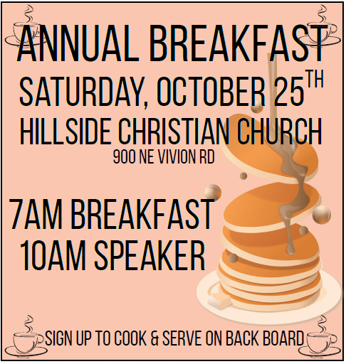Join us on October 25th for a morning of fellowship and great food! Come hungry!